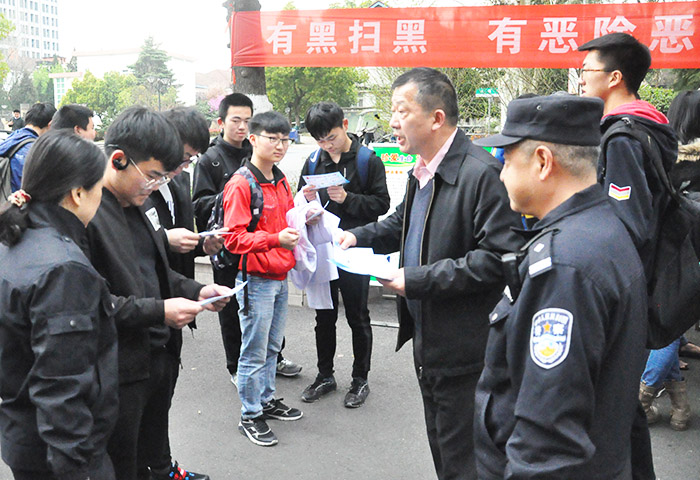 3月28日下午,学校开展扫黑除恶斗争集中宣传活动。副校长肖圣龙现场参加活动。