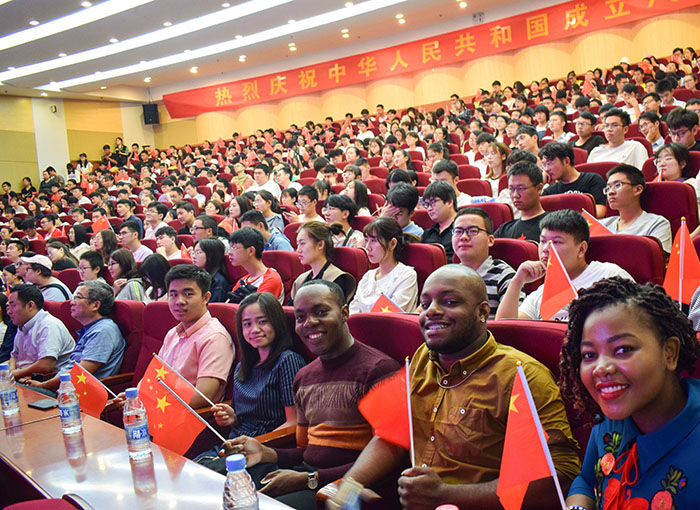 10月1日上午,庆祝中华人民共和国成立70周年大会在北京天安门广场隆重举行。随着庄严的国歌声响起,校领导顾家山、曹云霞、刘群英、常业军、肖圣龙、汪凯、吕雄文和全校师生代表通过实况直播,共同见证共和国激动人心的辉煌时刻。雄壮的乐曲声中,大家的骄傲、自豪之情油然而生。