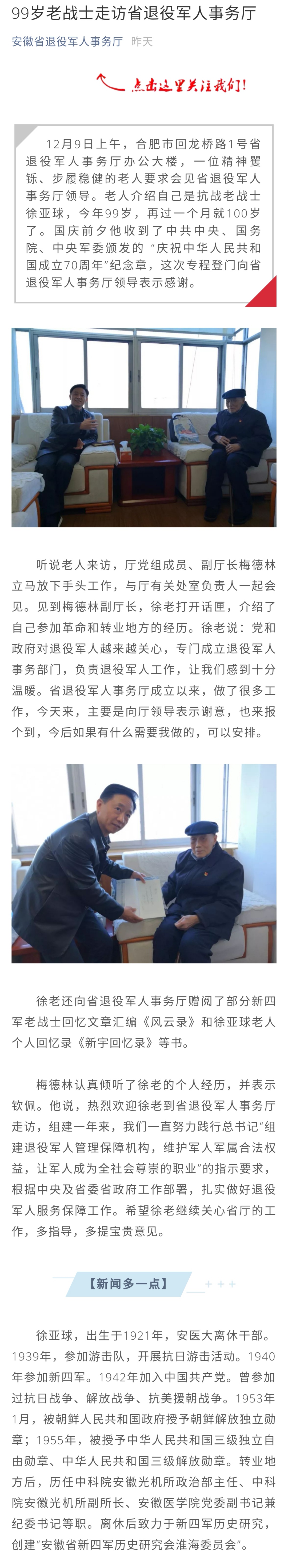 安徽省退役军人事务厅官方微信:99岁老战士走访省退役军人事务厅