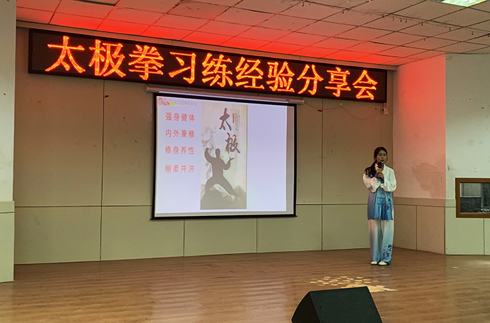 文化周期间,为了进一步探索大学生健康教育新模式,推进太极拳文化品牌建设,该校专家学者和师生代表共聚一堂,围绕“太极拳文化与身心健康”的主题进行了理论探讨和交流。