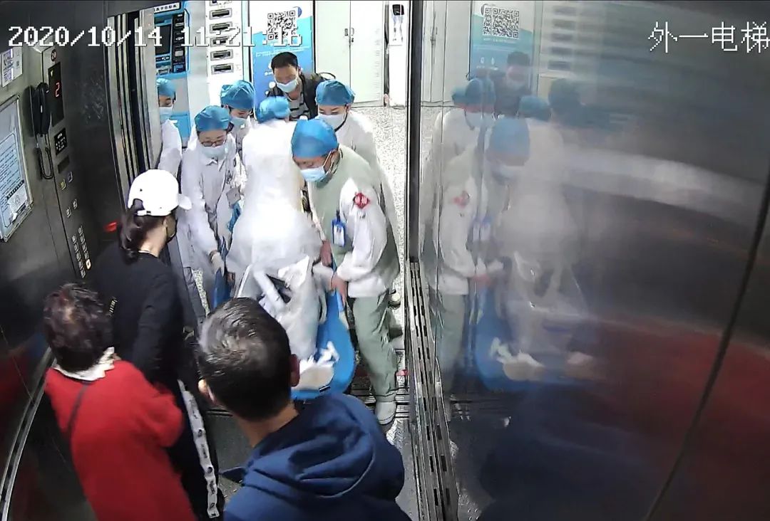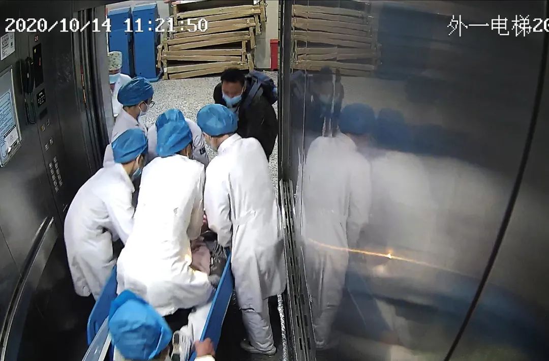“这种情况下,挽救患者生命是第一位的,我们要把握心肺复苏的黄金时间。”张进进说道,“团队的每一名医护人员都竭尽全力抢救患者,抢救环节稍有差错就会危及患者生命,不夸张地说,如果患者当时在院外,可能人就没了。”图为电梯里依然在按压抢救。