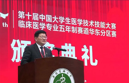 4月11日下午,第十届中国大学生医学技术技能大赛临床医学专业五年制赛道华东分区赛顺利完成各项既定赛程,在我校圆满收官。大赛裁判长、中南大学何庆南教授出席闭幕式作竞赛总结点评,并宣布竞赛结果。校党委书记顾家山出席仪式并宣布大赛闭幕,校长曹云霞致闭幕辞。