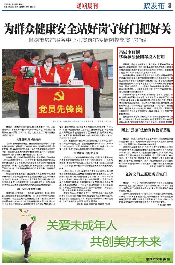 巢湖晨刊:巢湖市首辆移动核酸检测车投入使用