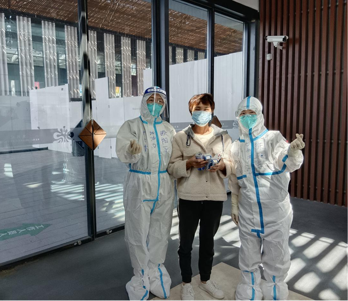 一切准备妥当后,欧阳平护士长把B671床的杨女士带到了生日会的C位,对她亲切地说:“杨妹妹,我们核对患者信息时发现今天是您44岁的生日,因为条件有限,我们安徽医疗队的护士、医生及后勤保障部门的姐妹们给您在舱里过个简单的生日,希望您早日康复,生日快乐!”谜底揭开,寿星登场,现场响起了热烈的掌声和欢呼声。惊不惊喜?意不意外?