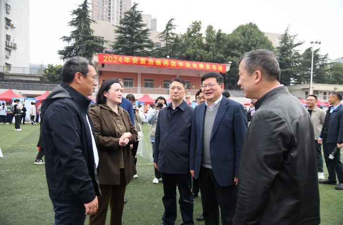 3月23日,2024年安徽省医药类毕业生就业市场在我校梅山路校区举办。安徽省卫生健康委员会副主任马勇,省教育厅高校学生处处长马家松,校党委书记顾家山,副校长肖圣龙、副校长吕雄文来到现场与用人单位和广大毕业生亲切交谈,倾听用人单位招聘需求、对我校人才培养意见建议,询问关怀毕业生的就业意向与求职进展。