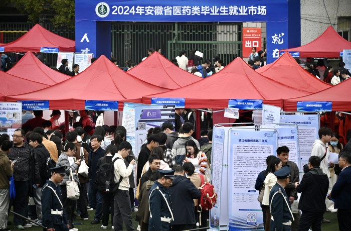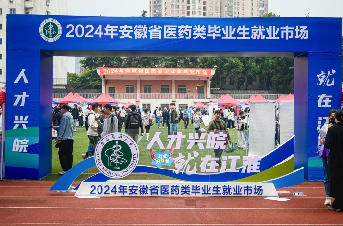 学校认真贯彻党中央、国务院关于高校毕业生就业工作决策部署,落实省委、省政府有关工作要求,把毕业生就业工作作为学校工作的重中之重,压紧压实就业工作责任,全力促进毕业生好就业、就好业。此次“人才兴皖‘就’在江淮”2024年安徽省医药类毕业生就业市场为省教育厅、省卫生健康委员会主办,也是我校连续第24次承办全省医药类综合招聘活动,共吸引来自省内及江苏、浙江、上海、福建等全国十多个省份的375家单位参加,参会单位数量创历史新高,其中安徽省内参会单位188家,占参会单位的50%。在参会单位中,公立医院262家,民营医院55家,生物医药企业58家,提供就业岗位达到2.2万个,共吸引省内医学院校8000余名毕业生。