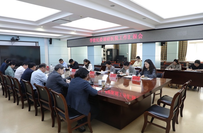 4月24日上午,校纪委书记、省监委驻校监察专员黄新美一行到第一附属医院开展工作调研。校党委副书记、一附院党委书记谢瑞瑾出席调研汇报会,并就该院推进医药领域腐败问题集中整治情况作专题汇报。
