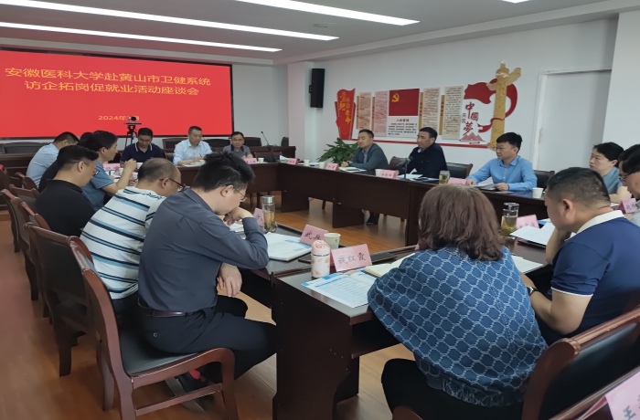黄山市卫健委及相关医院负责人,校学生处、党委研工部、公共卫生学院等单位负责人参加调研。(校2024届毕业生就业工作专班 王曦)