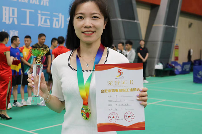 近日,合肥市第五届职工运动会乒乓球比赛在合肥经开区李宁体育园顺利举办,我校职工袁玎代表学校被选拔参加经开区总工会中年组女子团体乒乓球比赛,勇夺团体一等奖。