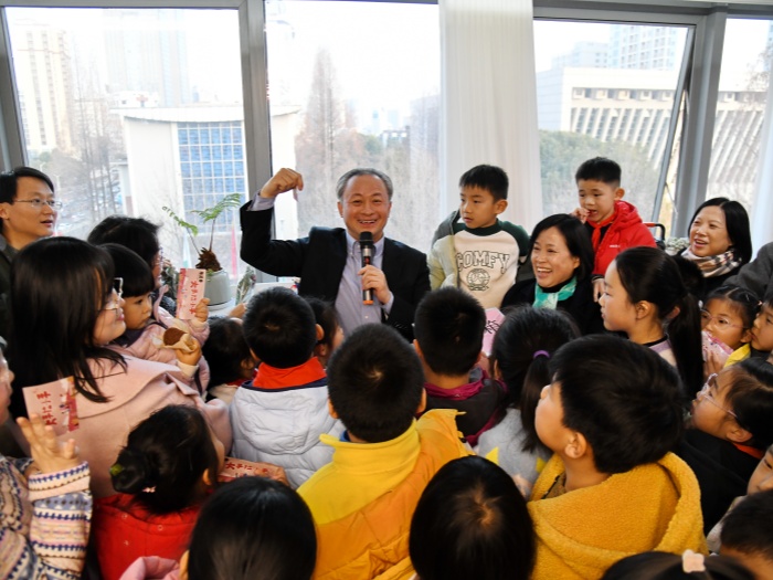 此次活动中,全校约100名教职工子女代表受邀参与。翁建平与孩子们亲切交流,鼓励他们要努力学习、健康成长,并为每个人赠送明信片,传递学校的关怀与期望。