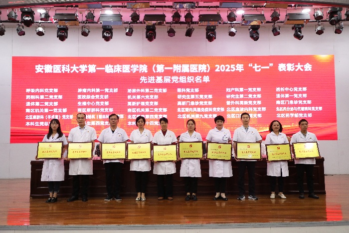 6月27日下午,第一附属医院在绩溪路院区内科医技楼四楼会议中心举行庆祝中国共产党成立104周年暨“七一”表彰大会。校党委副书记、院党委书记徐朝阳出席会议,向老党员们颁发“光荣在党50年”纪念章。院党委副书记、院长孙倍成主持会议。