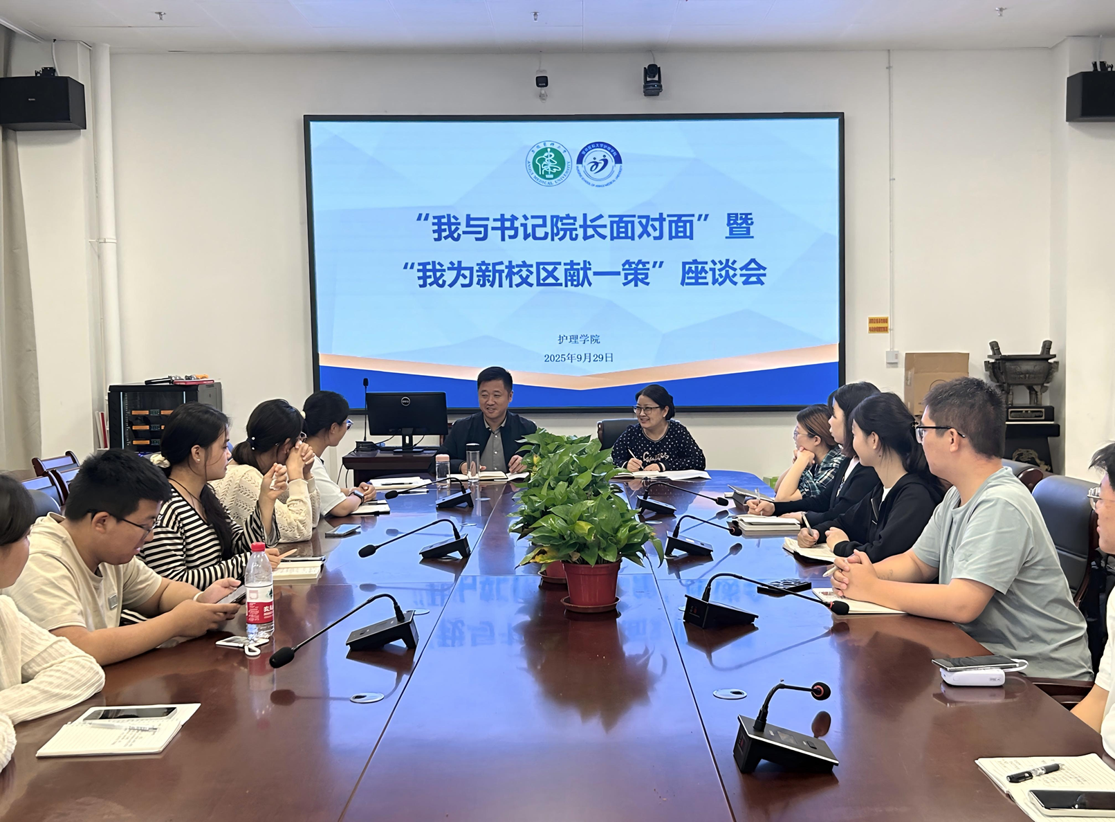 国庆节前,护理学院召开“我与书记院长面对面”暨“我为新校区献一策”座谈会。学院党委书记薛磊、副院长李树雯、新生辅导员与2025级研究生、本科生新生代表齐聚一堂,围绕新校区学习生活、后勤保障等方面展开深入交流。
